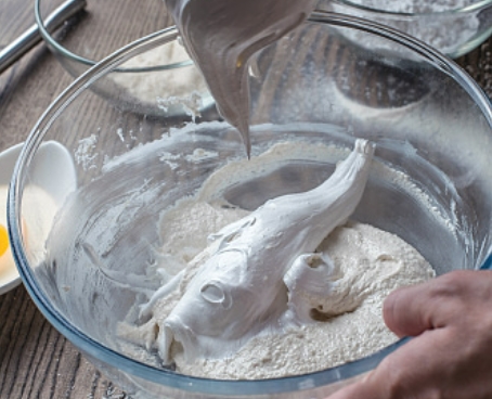 이 젖은 재료를 마른 재료에 부을 때 한 가지 팁!